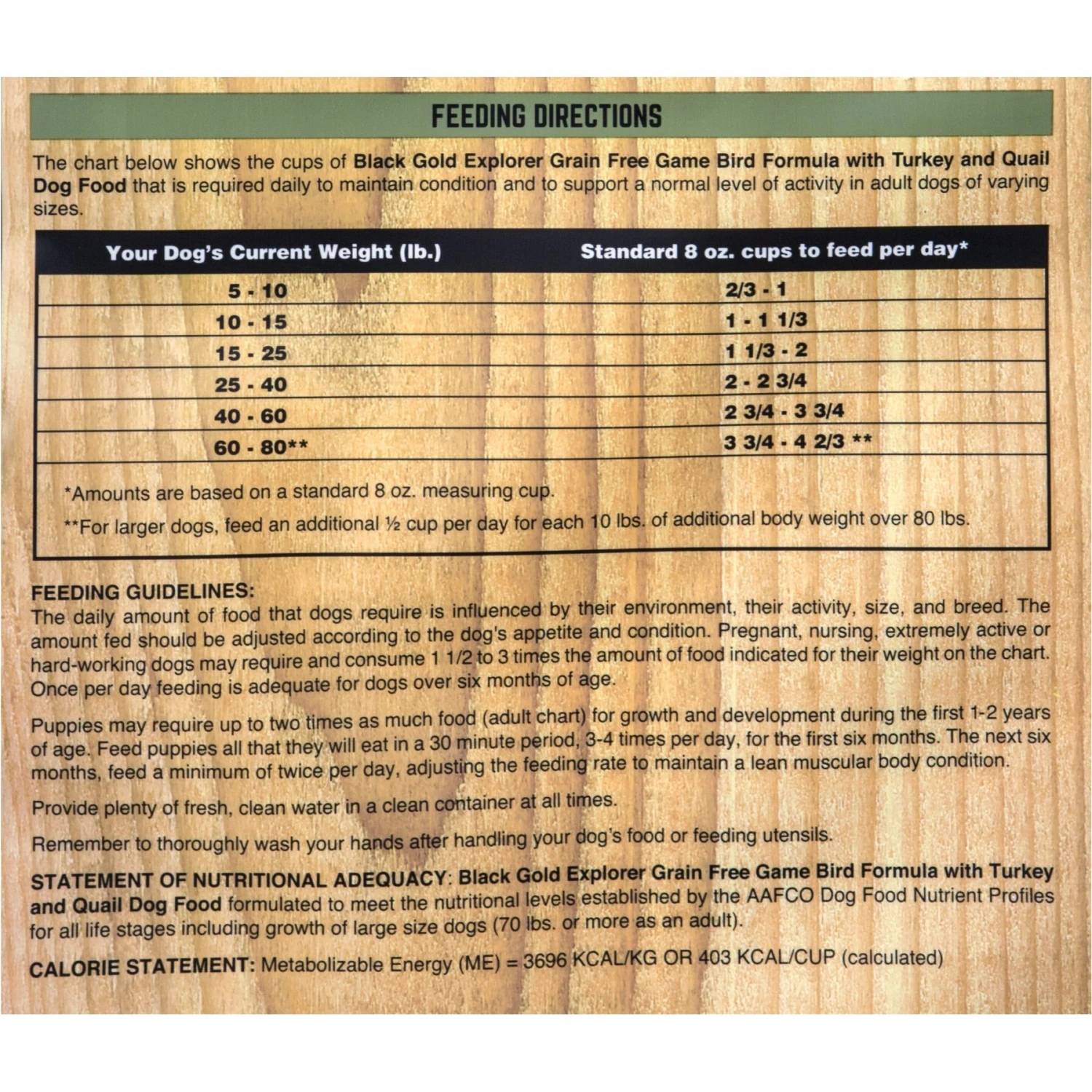 | Flavor | Game Bird, Timber Ridge |