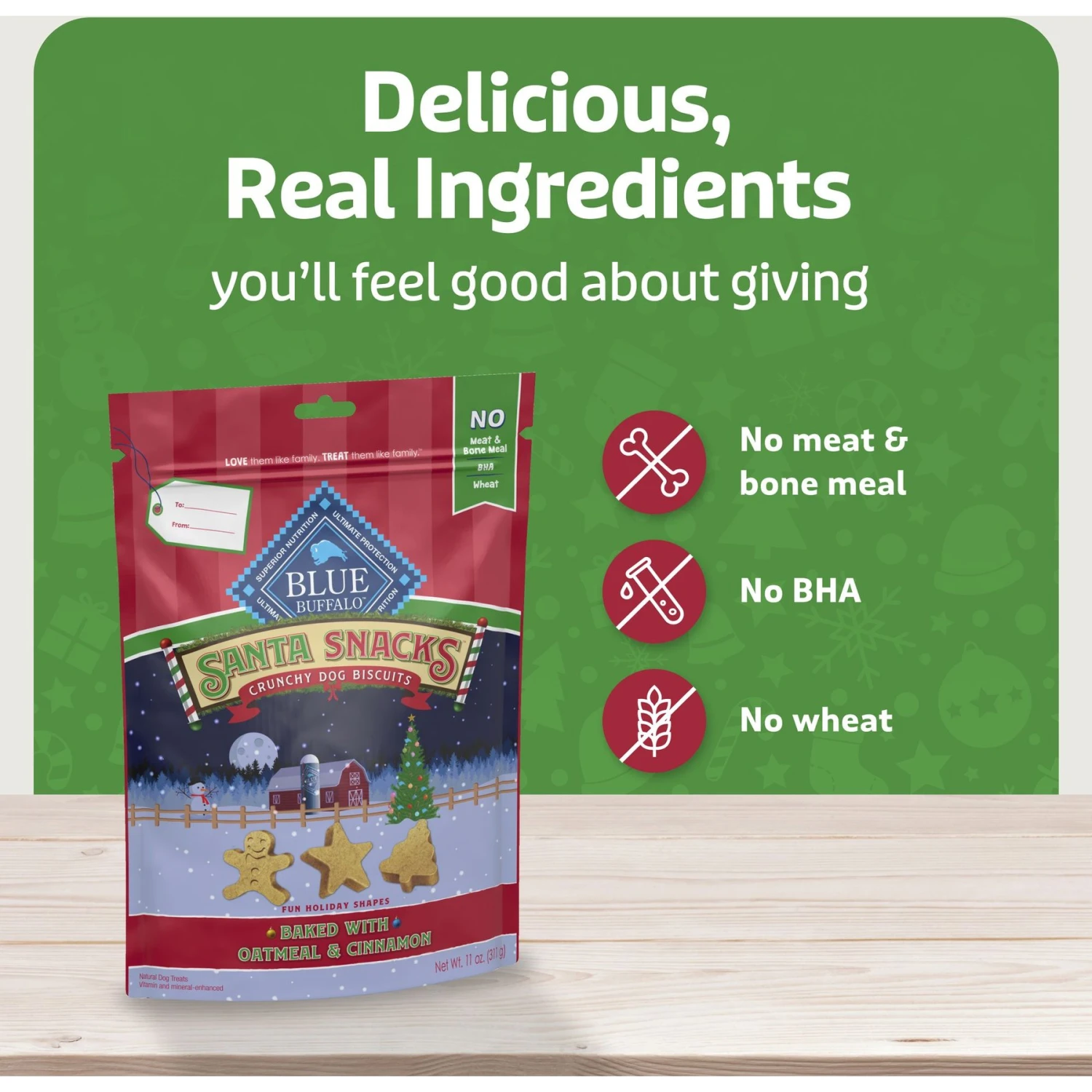 Blue Buffalo Holiday Santa Snacks Oatmeal & Cinnamon Crunchy Dog Treats, 11-oz Bag