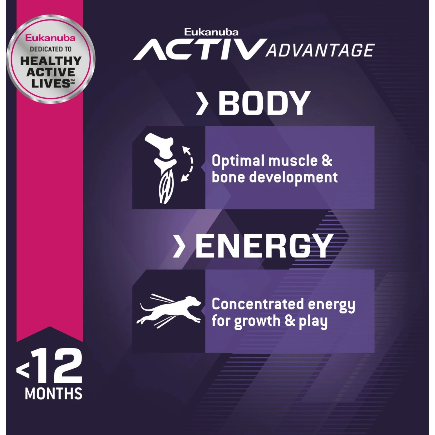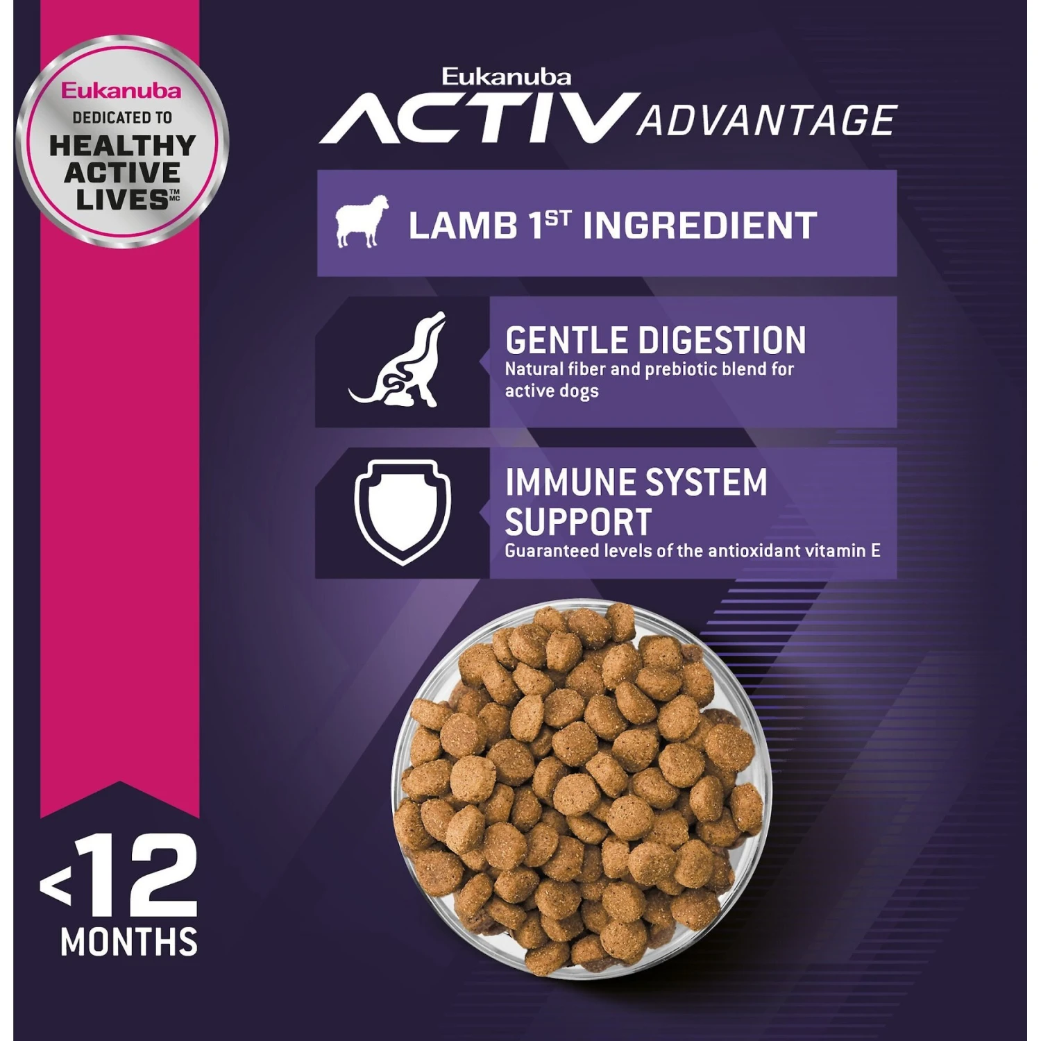 - Supports muscle growth and bone health in athletic pups with high-quality animal protein and optimized levels of calcium and phosphorous.
