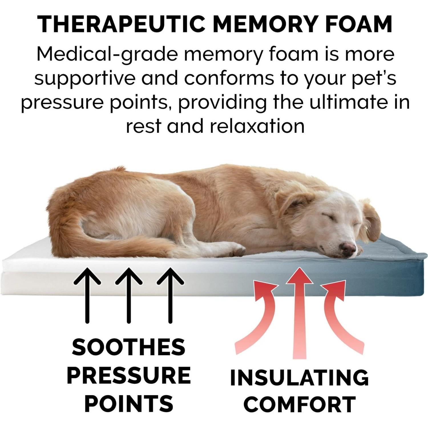 - Features an orthopedic foam base and an insulating layer of memory foam for joint and pressure point relief.