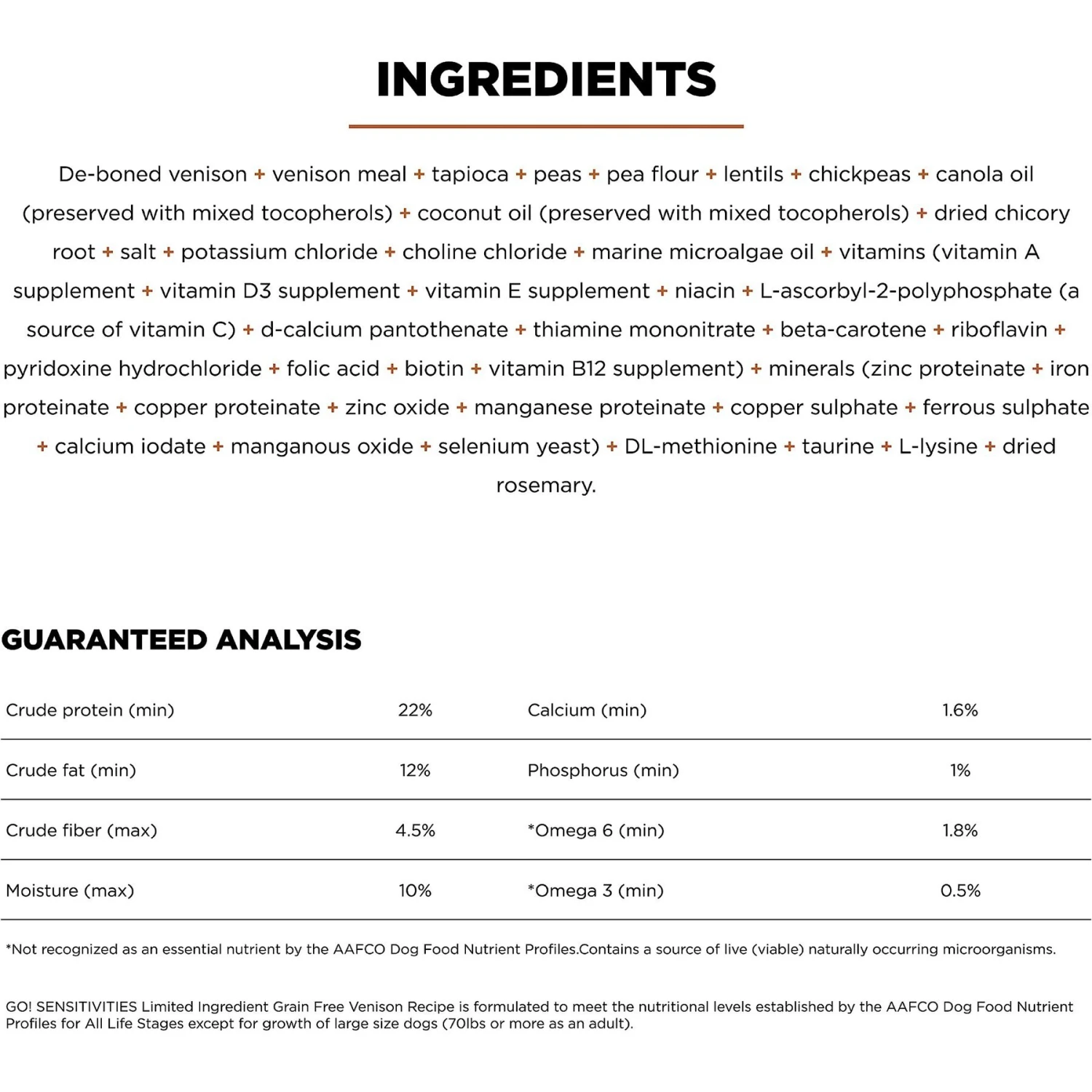 - Deboned venison is the #1 ingredient and fiber from the dried chicory root supports sensitive stomachs. This recipe is made without by-product meals or artificial preservatives.