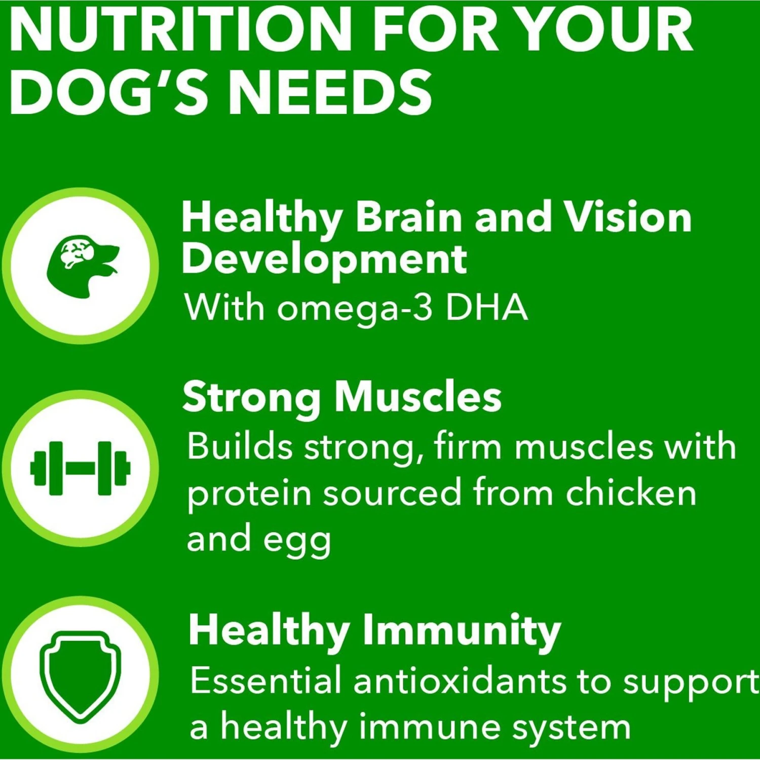 - Premium-sourced protein helps your pup develop strong muscles.