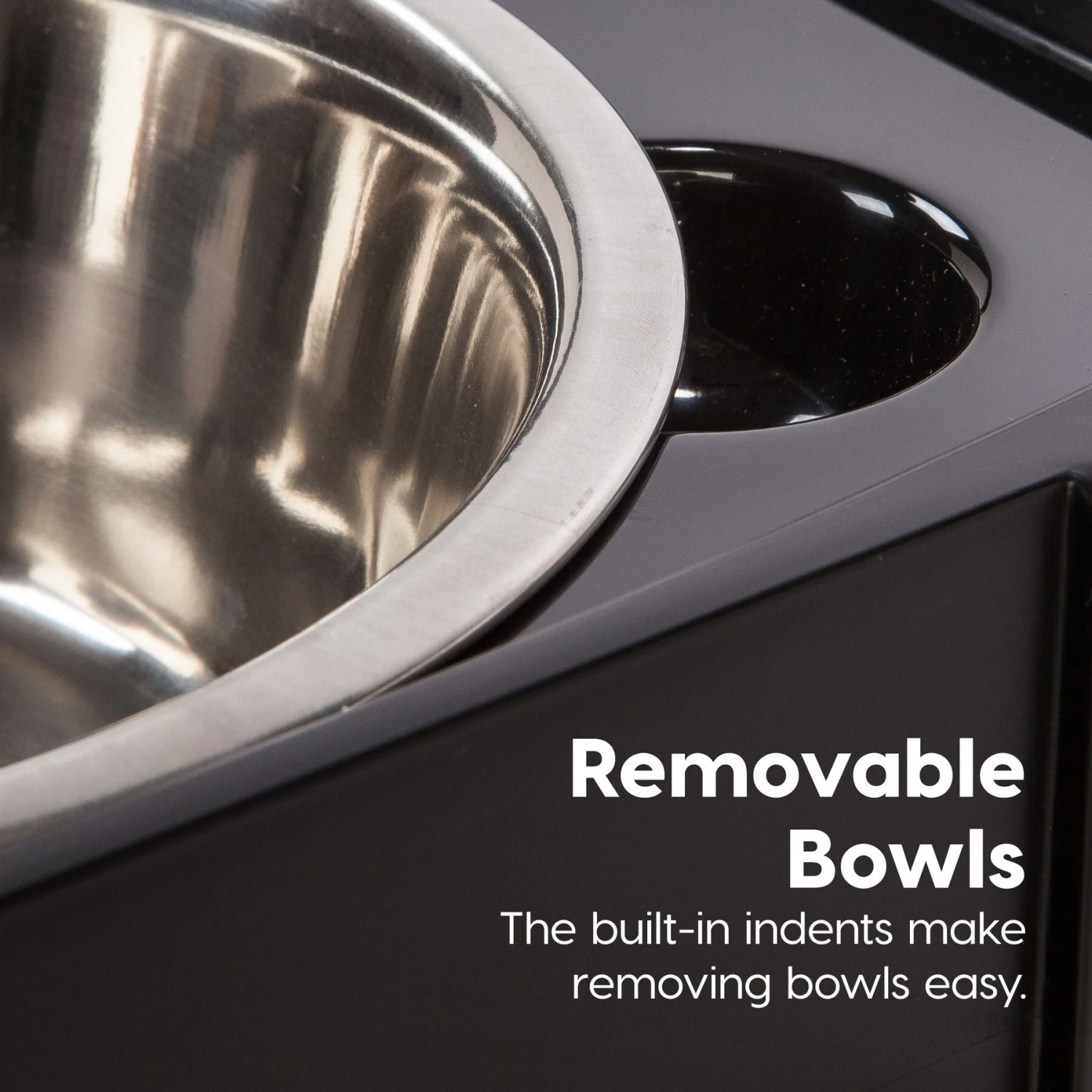- Provides convenient storage and feeding all in one, includes two removable, stainless-steel bowls for easy cleaning and each bowl holds two quarts of water or food.