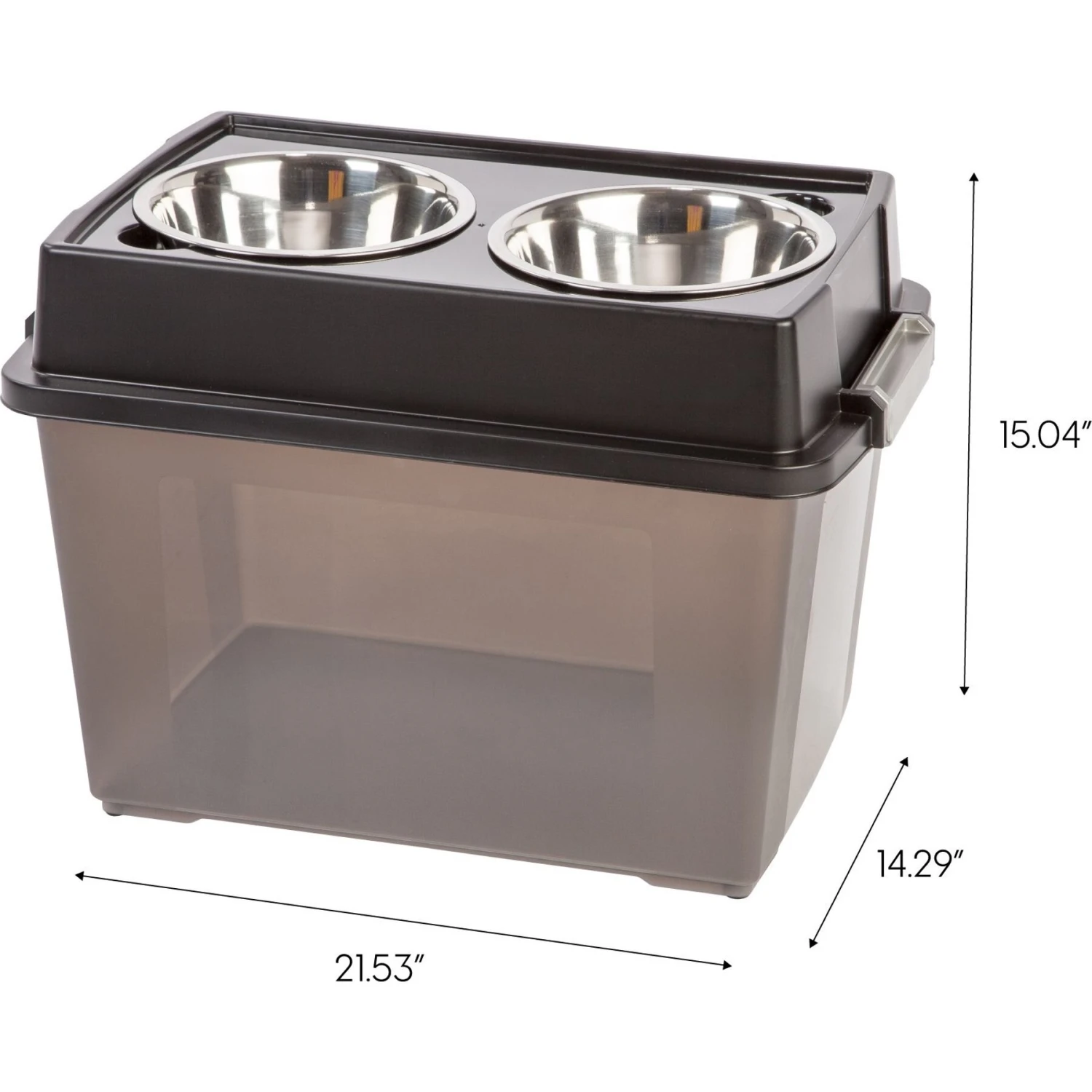IRIS USA WeatherPro Airtight Elevated Pet Feeder With Food Storage Container & Bowls In Lid, Smoke/Black, 8-cup