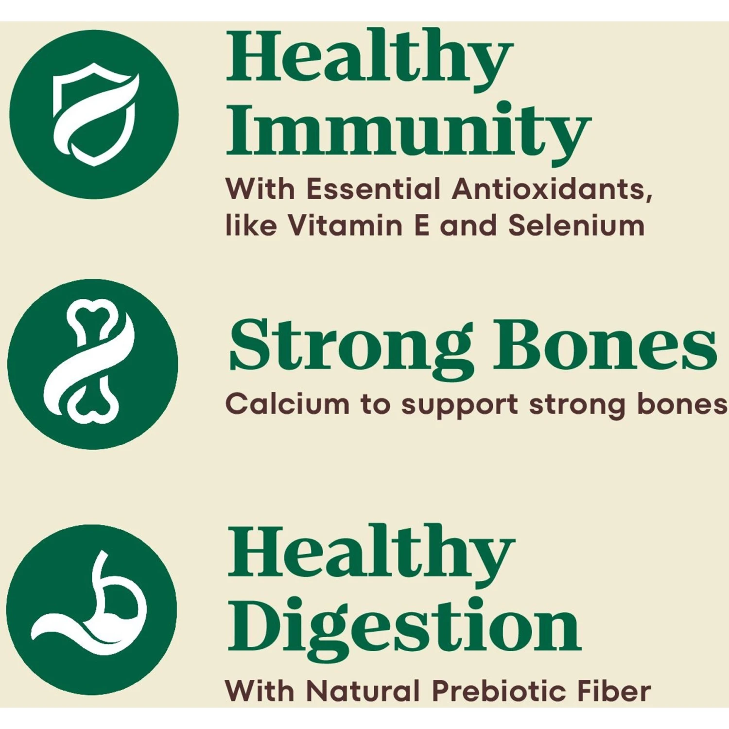 - Made with natural fiber and omega-6 and -3 fatty acids to help support healthy digestion and healthy skin and coat.