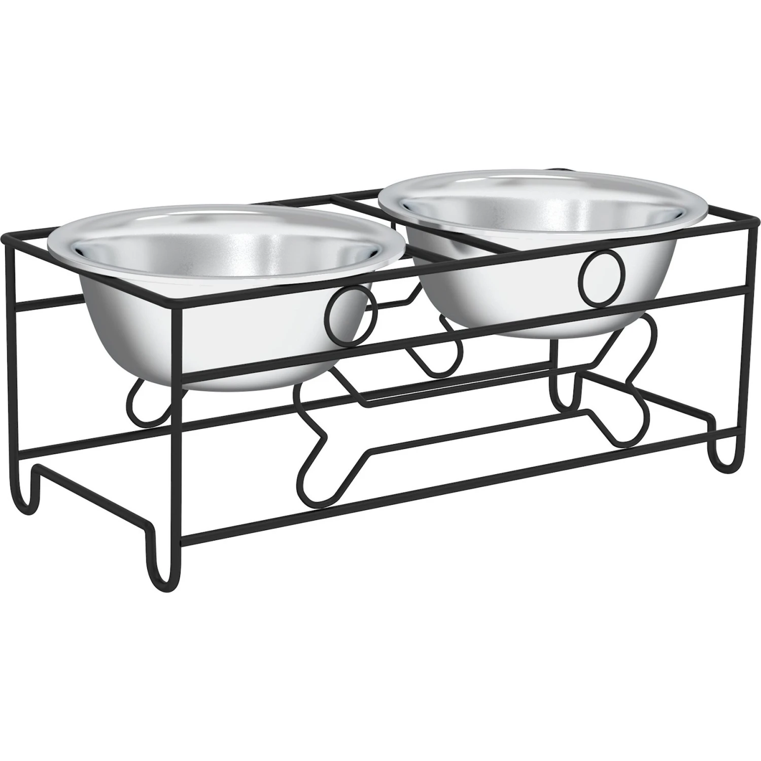 - The powder-coated black finish is designed to stand up against spilled water, wet food, drool and more.