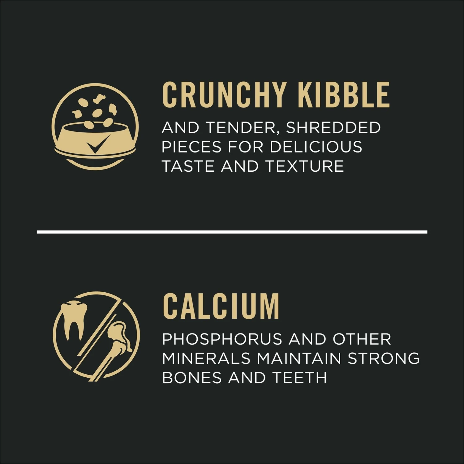 - Bite-sized kibble and shredded pieces create a delicious combo of crunchy and tender textures for an adult dog food that little dogs love.