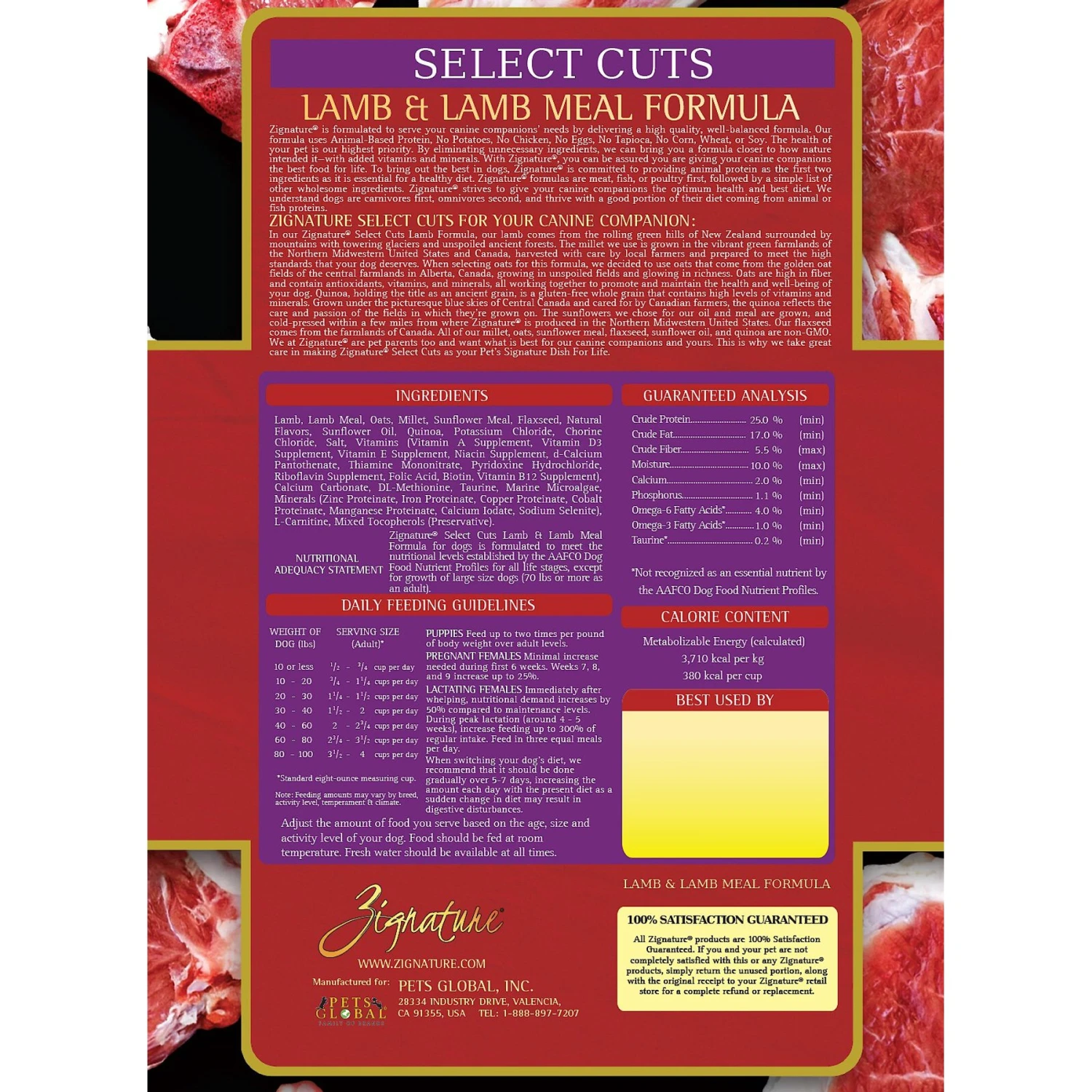 Zignature Select Cuts Lamb & Lamb Meal Formula Dry Dog Food